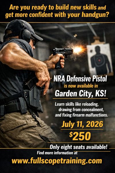 The Kansas Attorney General’s approved course for those wishing to obtain their Kansas Concealed Carry License. This course covers the fundamentals of marksmanship and firearms operation, defensive mindset, and a heavy focus on the legal carrying and use of firearms for self-defense. This course is primarily classroom oriented with a live fire qualification at the end. Students should know how to use their firearm safely and effectively before taking this course. Click HERE for more information. This is not an NRA-approved course.
